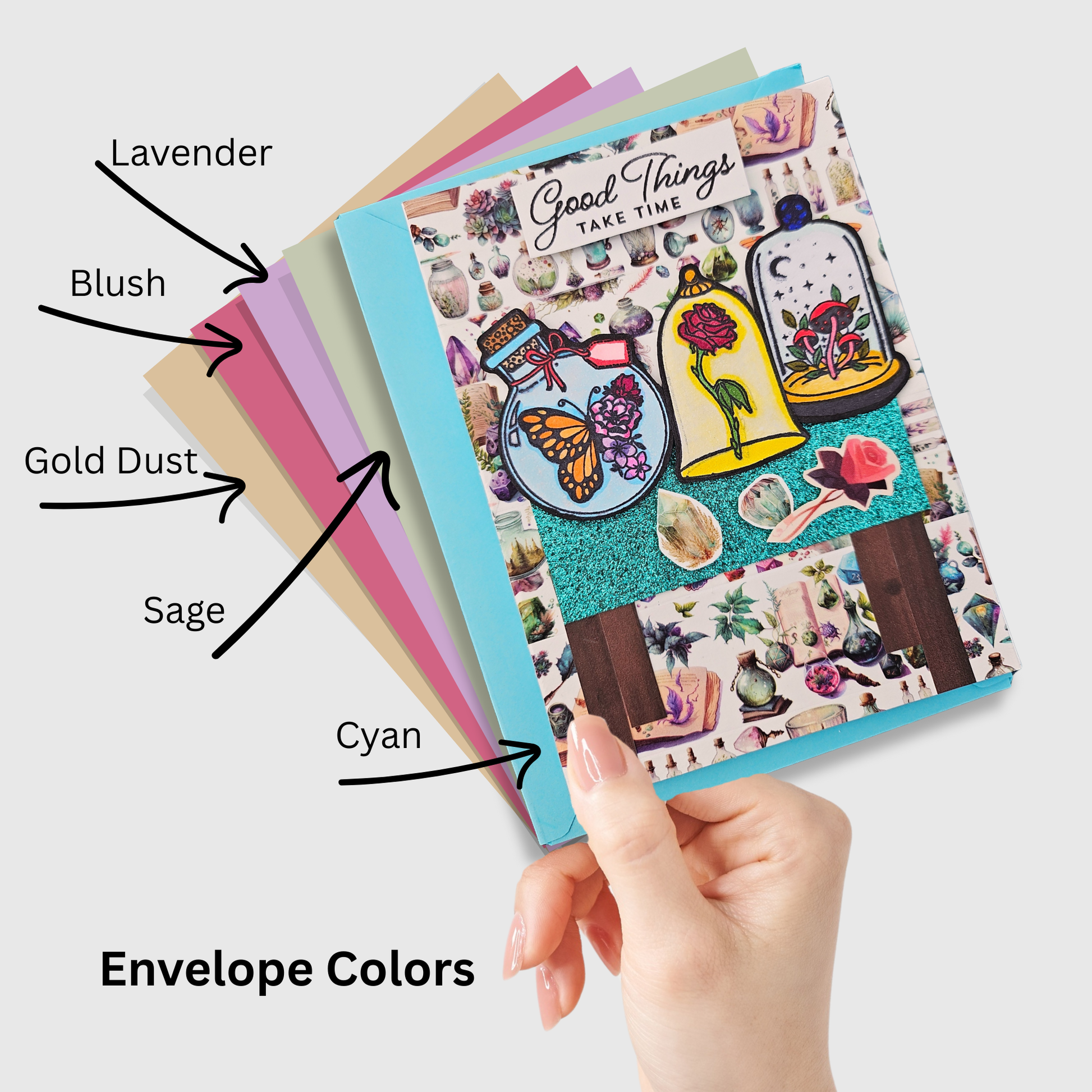 Introducing 'Good Things Take Time | Inspirational Folded Greeting Card,' a charming card that captures the inspirational message of believing in oneself. This delightful card is perfect for sending those inspirational wishes to friends and family.